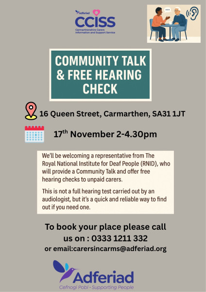 We’re hosting a free community talk and hearing check event for unpaid carers.