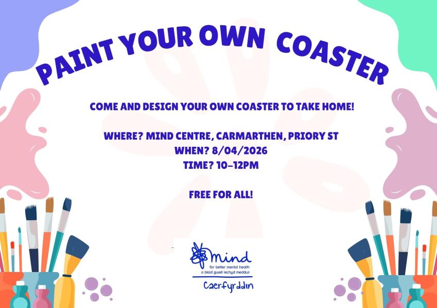 Come and enjoy a creative morning at Mind. Enjoy a calm and creative session where you can paint, design and take home your own personalised coasters. Perfect for beginners or anyone looking to try something new!