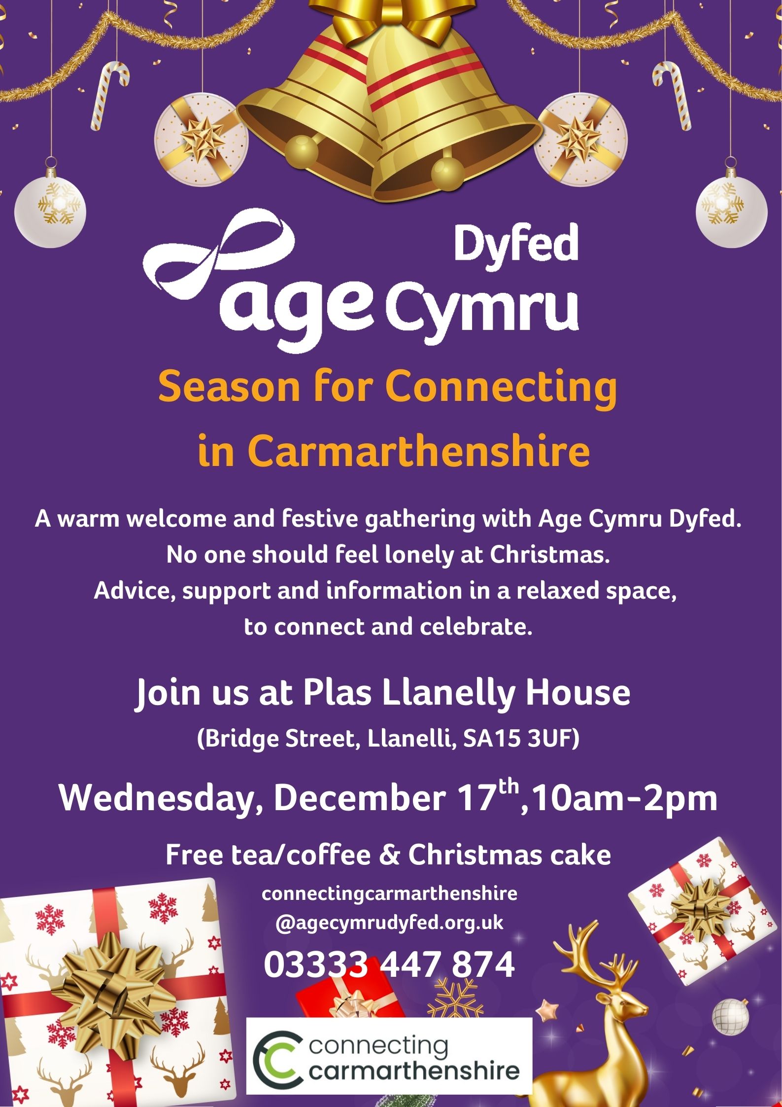 Join us at our ‘Season for Connecting in Carmarthenshire’ festive gathering at Plas Llanelly House on Wednesday, December 17th between 10 a.m. and 2 p.m.